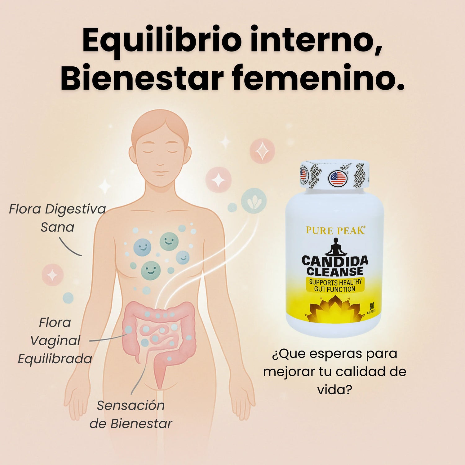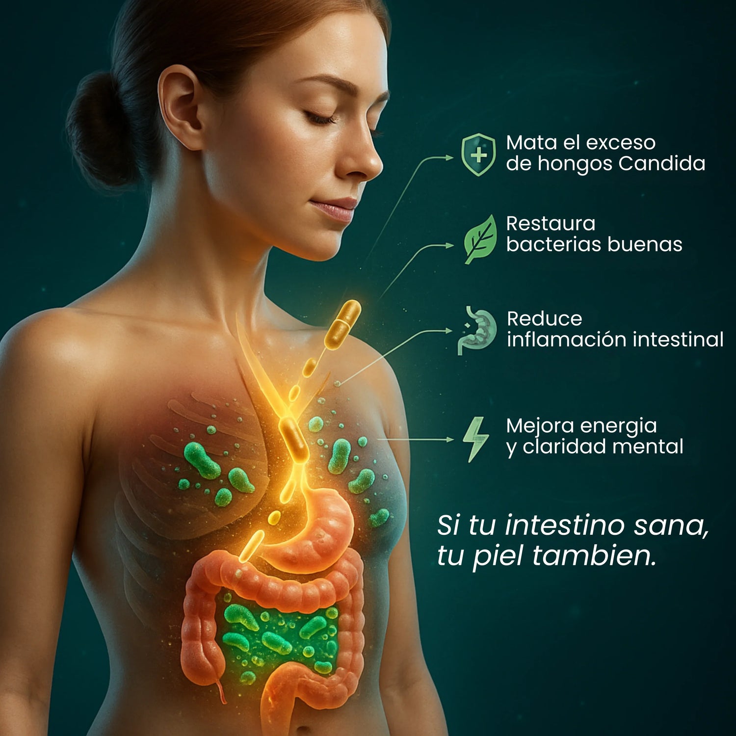 Es un suplemento natural formulado para ayudar a eliminar el exceso de Candida en el cuerpo, restaurar el equilibrio intestinal y fortalecer el sistema inmunológico.